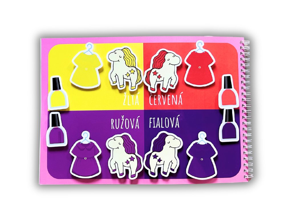 Odolná voči detským rúčkam, strany aj dieliky sú potiahnuté potravinárskou fóliou. Obsahuje 15 strán (aj s úvodnou). Určená je pre milovníkov ružovej. Obsahuje všetko, s čím by sa detičky už od 1,5 roka mali postupne zoznamovať. Farby, tvary, čísla, logické úlohy či obliekanie bábik. Je tu možnosť personalizácie na meno a v cene je zahrnutá aj stierateľná fixa. Ak sa rozhodnete pre knižku s menom, nezabudnite ho vpísať do poznámky. Je opakovateľne použiteľná vďaka dielikom, ktoré držia na suchom zipse. Detičky tak môžu dieliky prilepovať a odlepovať zas a znova. Je to jednorázová investícia, ktorá vám zaručí nekonečnú zábavu.