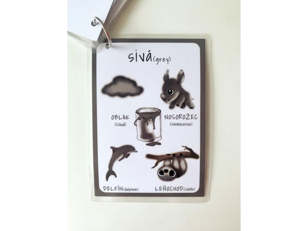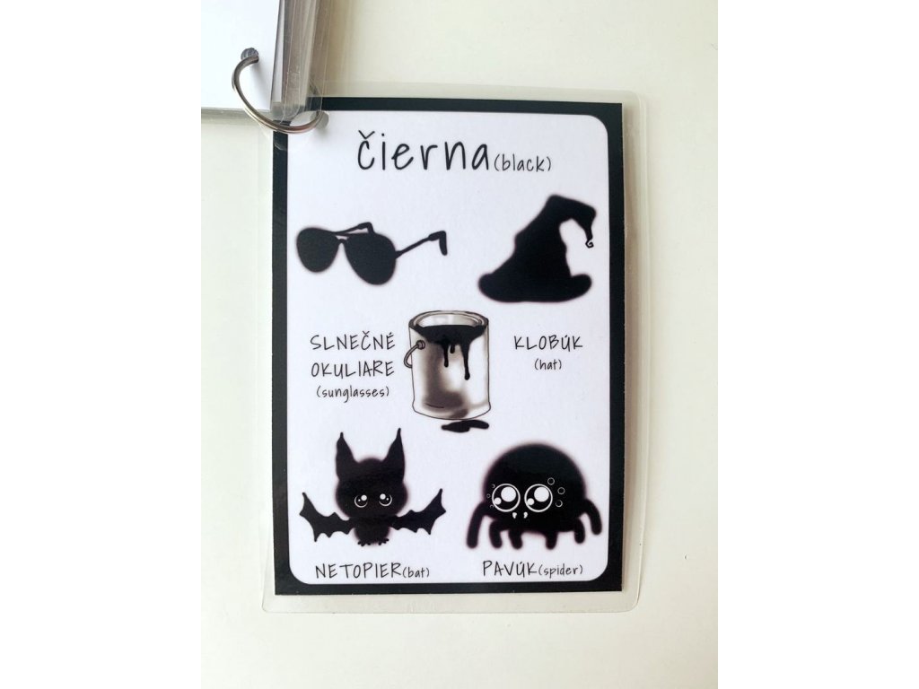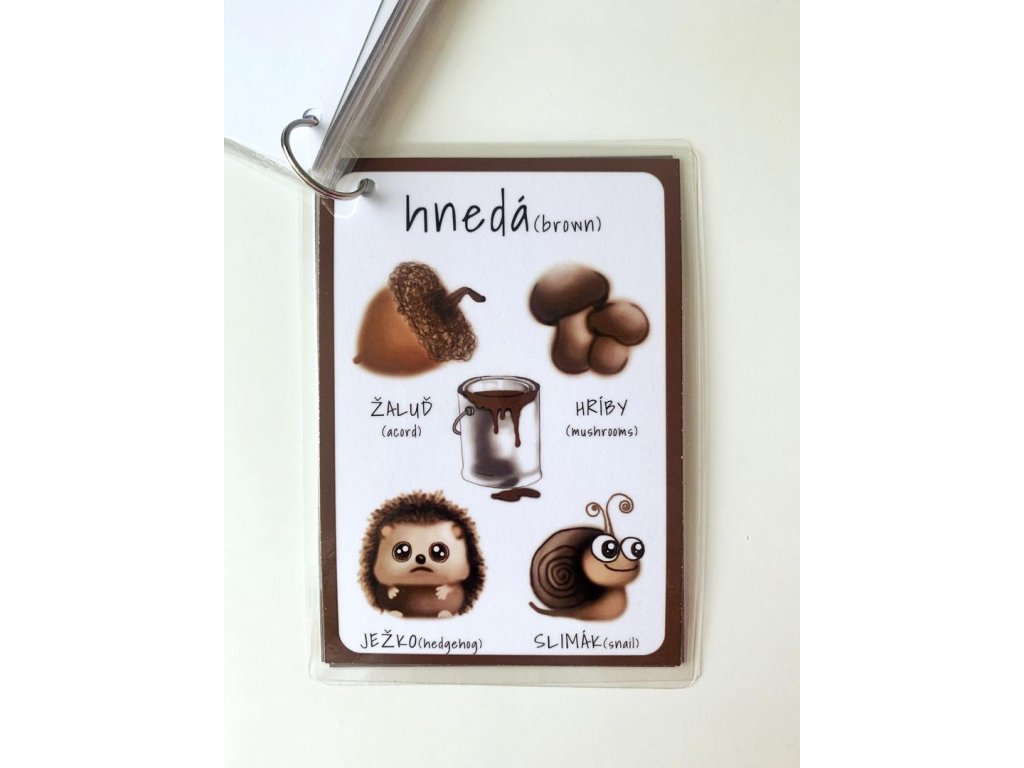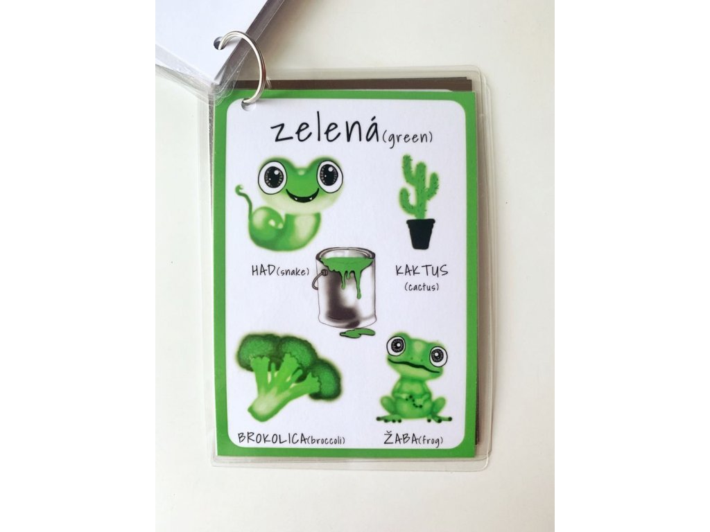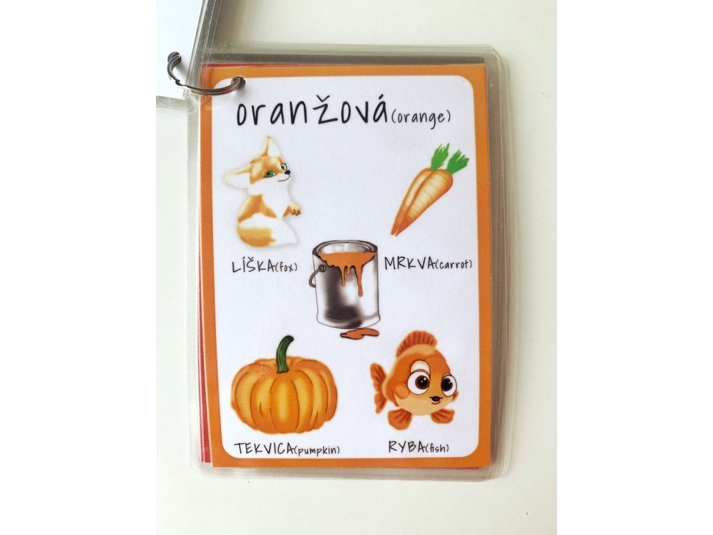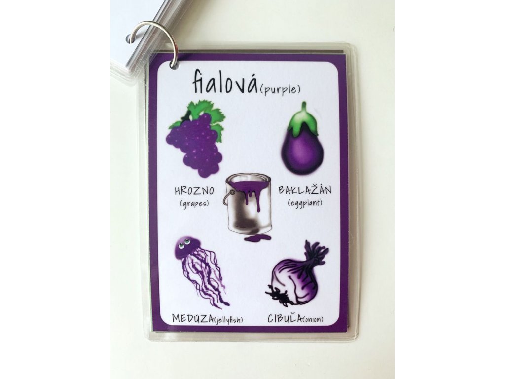 Ku každej farbe patria 4 obrázky, pod ktorými je názov v slovenskom aj anglickom jazyku.
