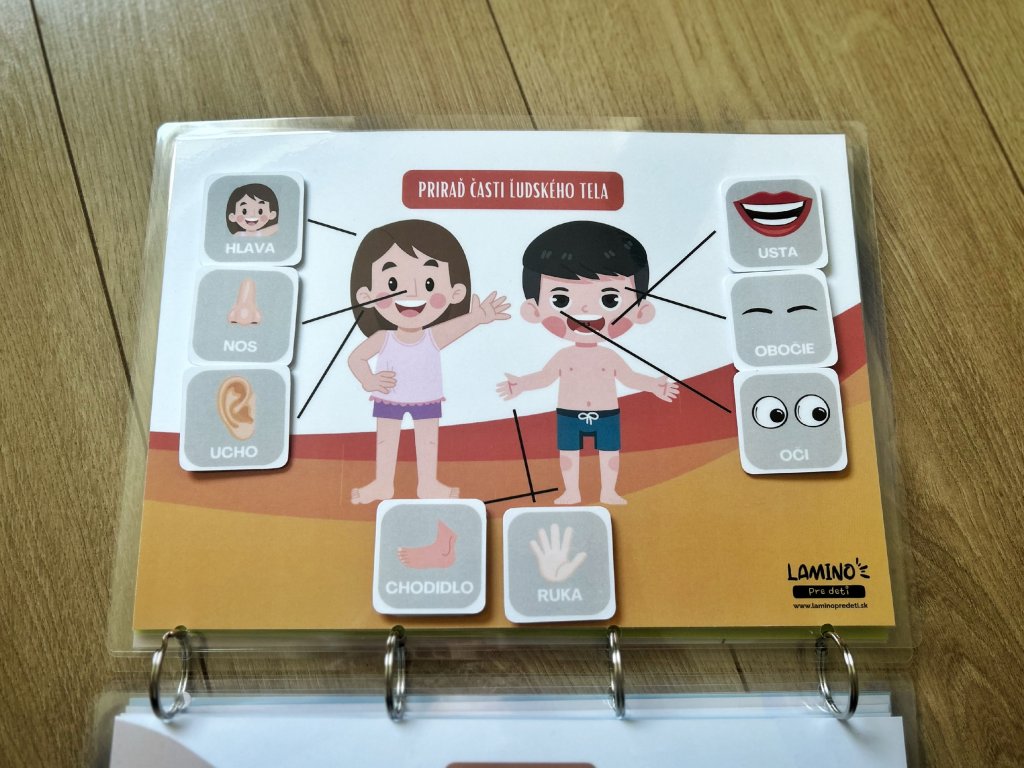 Kniha obsahuje 14 strán aktivít. Aktivity sú rôznorodé, zahŕňajú celé spektrum úloh, s ktorými by sa detičky mali od mala zoznamovať. Zvieratká, farby, ľudské telo, emócie, ovocie a zelenina, členovia rodiny, čísla, písmená, tvary,... Kniha je personalizovaná, do poznámky k objednávke napíšte meno Vášho dieťatka, jeho vek a obľúbenú farbu a my to radi zakomponujeme priamo do knižky.