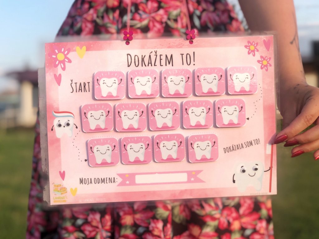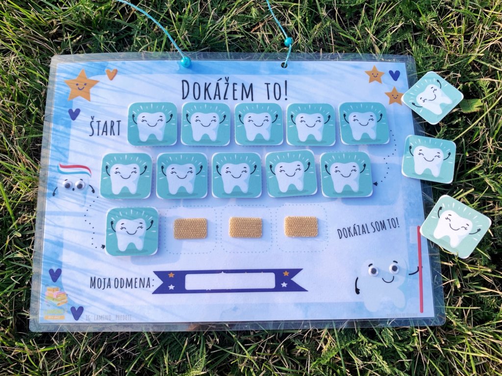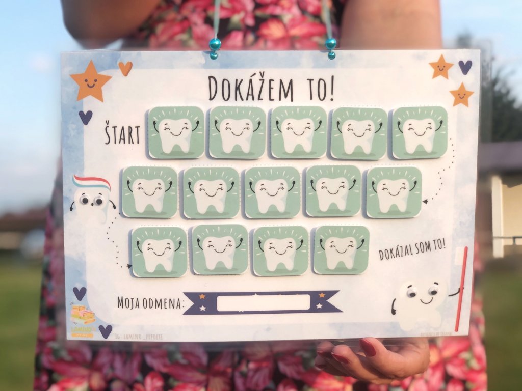 Za každé umývanie zúbkov dostane dieťatko jeden obrázok na nalepenie - po zaplnení celej kartičky príde vopred dohodnutá odmena (ku kartičke je samozrejme stierateľná fixka).