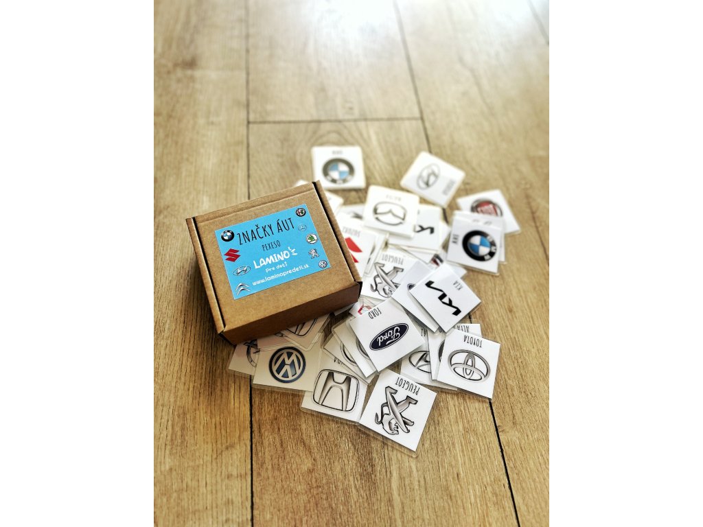 Pexeso na tému ZNAČKY ÁUT obsahuje 20 párov pexesa s obrázkami najznámejších značiek áut spolu s ich názvami.