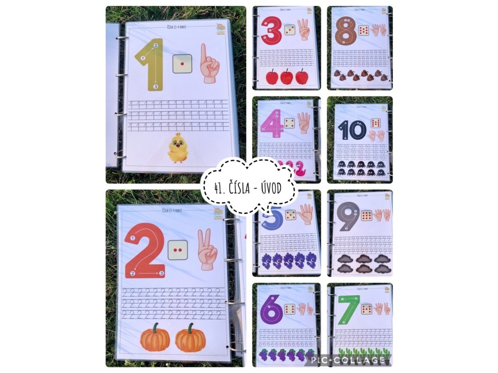 Témy pracovných listov: zoznamovanie s písaním čísel, spoznávanie čísel, číselné rady, spočítanie objektov, porovnávanie počtu objektov, susedné čísla, priradzovanie počtu objektov k číslam, životné etapy.