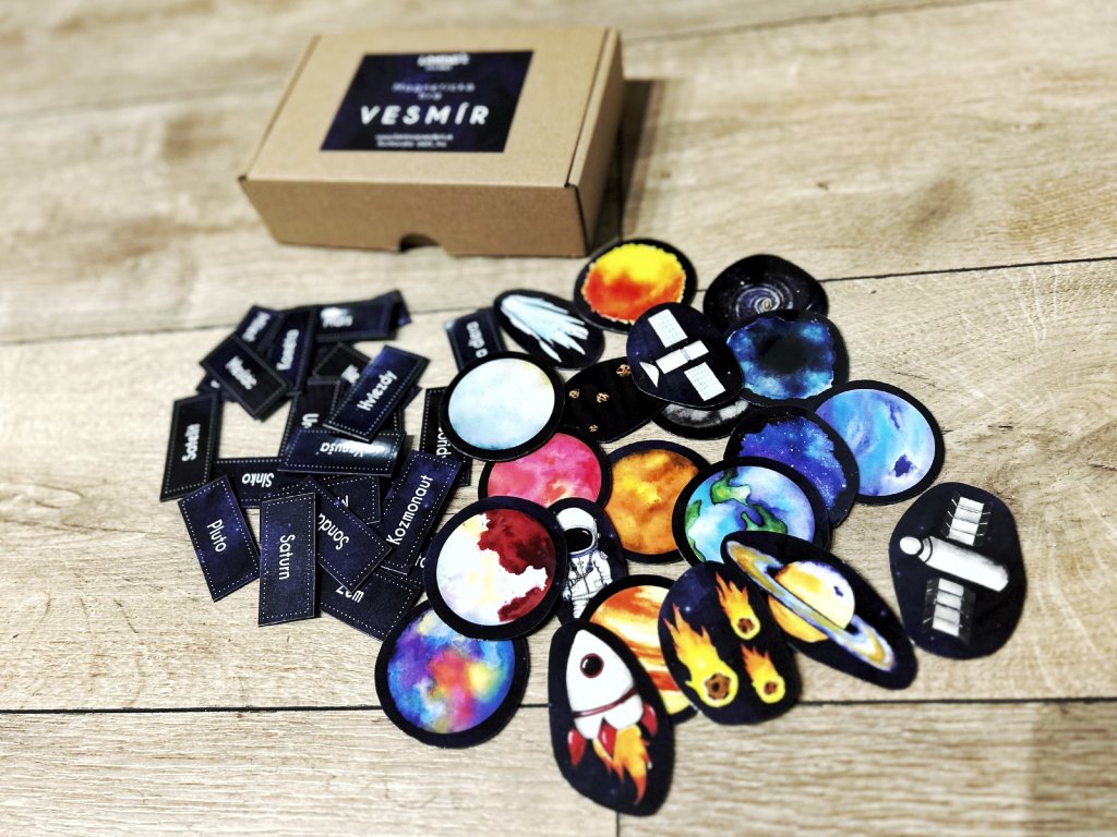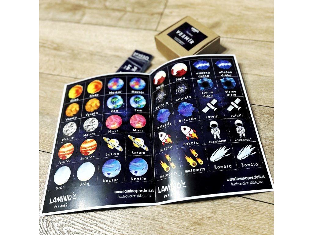 Set obsahuje plagát A3, 22 komunikačných kariet, 20 párov pexesa a 44 dielnu sadu magnetickej hry.