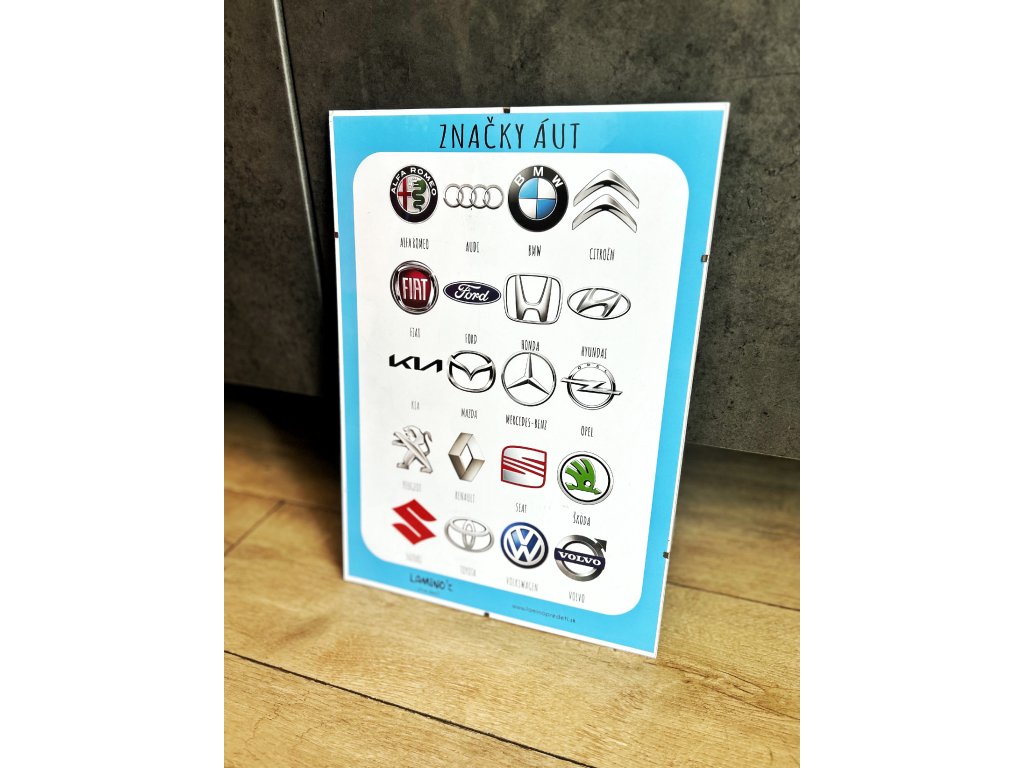 Vzdelávací plagát na tému ZNAČKY ÁUT. Obsahuje 20 najznámejších značiek áut. Tento plagát je vhodný do detskej izby či do školy.
